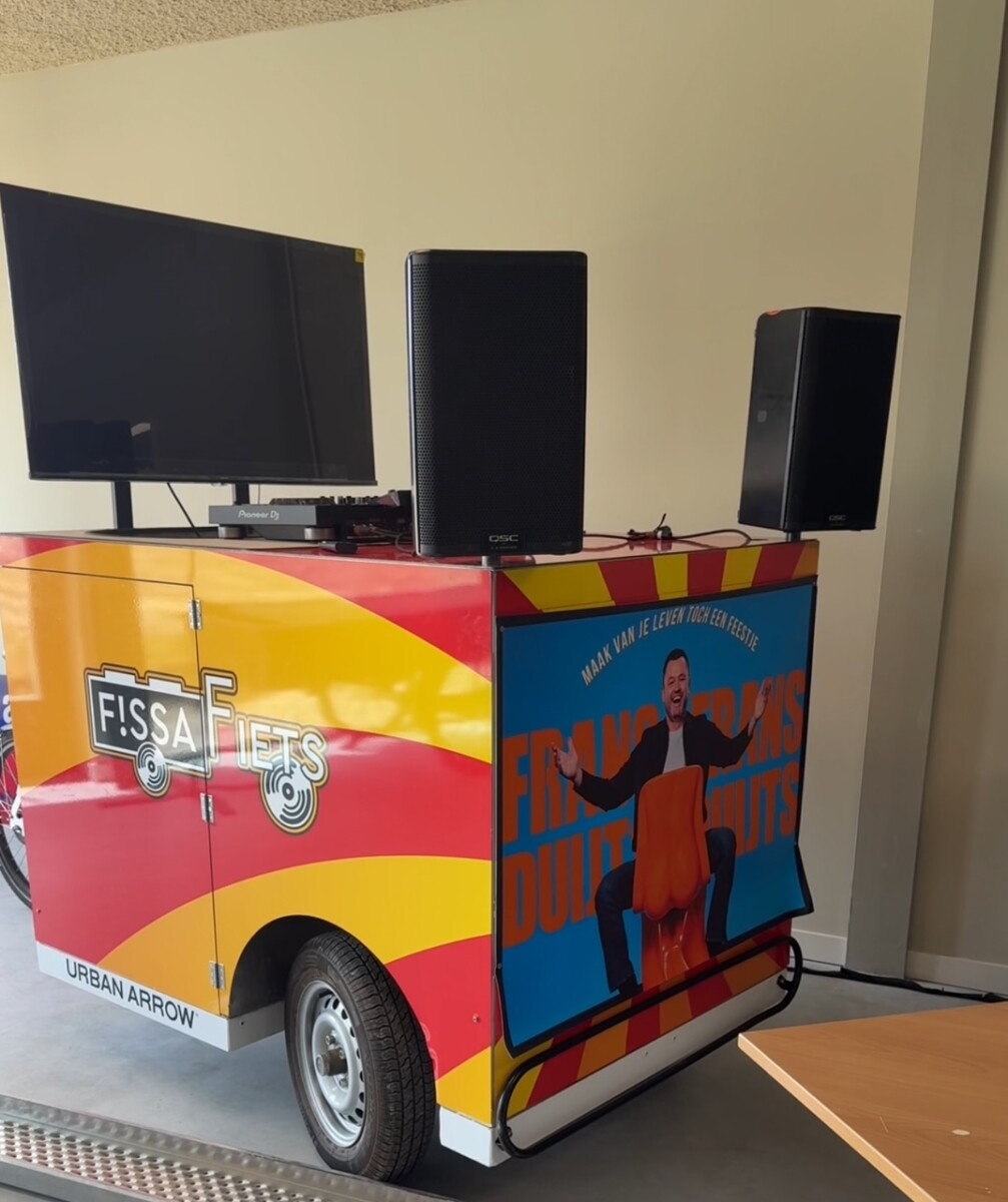 FissaFiets heeft in samenwerking met SUNVIG een karaoke bakfiets gebouwd. Na 4 dj-bakfietsen werd het ook tijd voor een nieuw concept. We willen als creatieve leverancier/ partner onze klanten verrassen, dus ook na deze karaoke bakfiets zijn we alweer een nieuw concept aan het uitwerken en testen. De moving movie theatre , stay tuned ……….